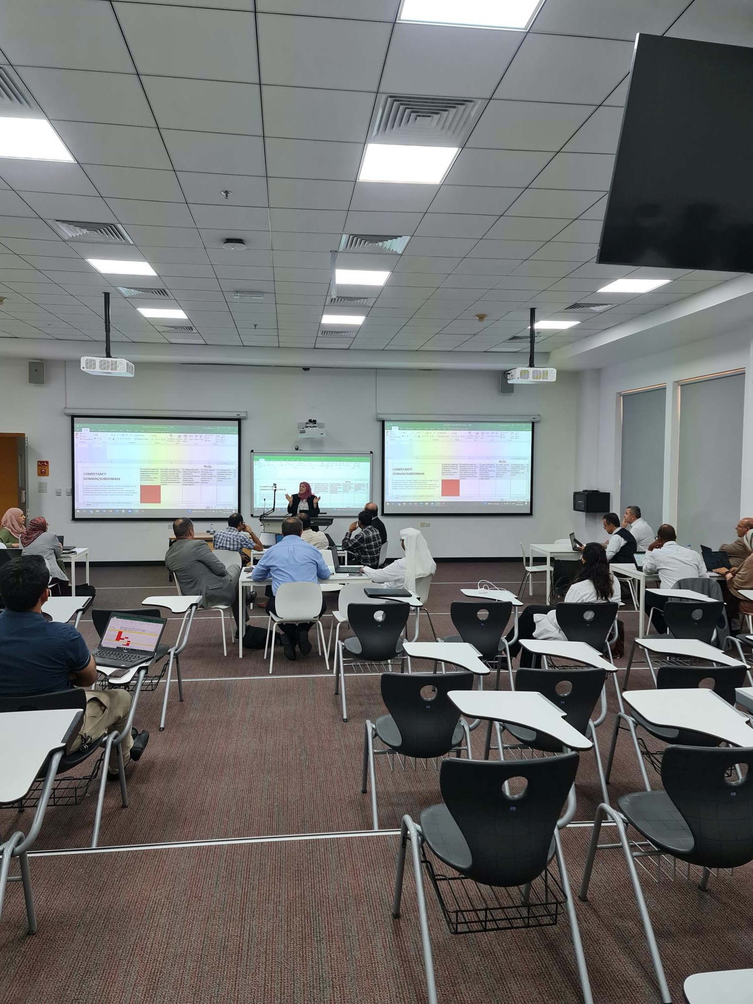 A Workshop titled: “Competency Framework assessment within the BPharm Program” was conducted on Thursday October 27, 2022 from 3:30-5:30pm in Hall No. 4 – female to have a plan for assessing program competencies required by CAA and to be implemented starting this Fall 2022 semester. This invitation involved all College faculty, Lecturers, Instructors, Assistant instructors and Teaching Assistants.