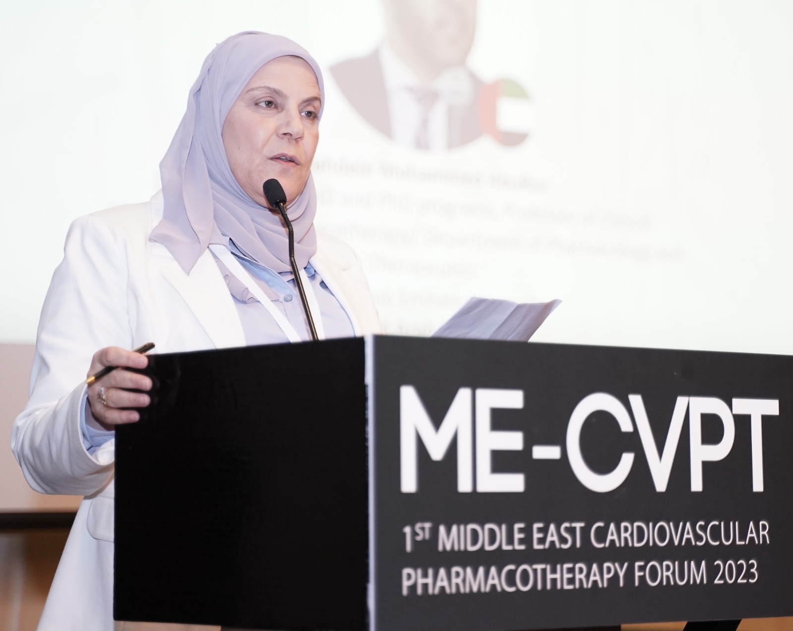 Faculty and Master's students from Ajman University's Department of Clinical Sciences, College of Pharmacy and Health Sciences, guided by Dr. Sanah Hasan, attended the first Middle East Cardiovascular Pharmacotherapy Forum (ME-CVPT) held on October 14, 2023, at the Jumeirah Creekside Hotel in Dubai. The main purpose of this conference was to discuss the latest advancements and publications in cardiovascular pharmacotherapy and to implement guidelines for directed medical therapy in the region. Furthermore, the conference aimed to enhance collaboration between regional and global clinical cardio-pharmacist specialists.