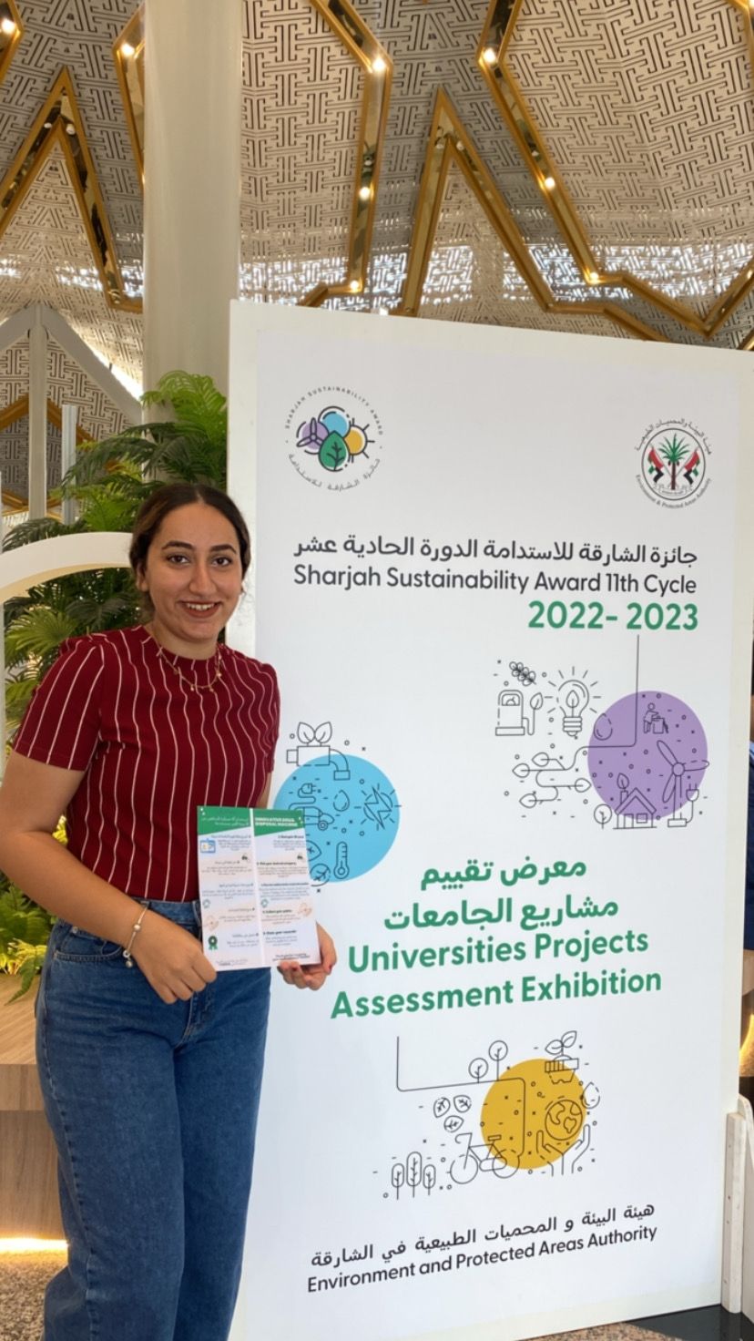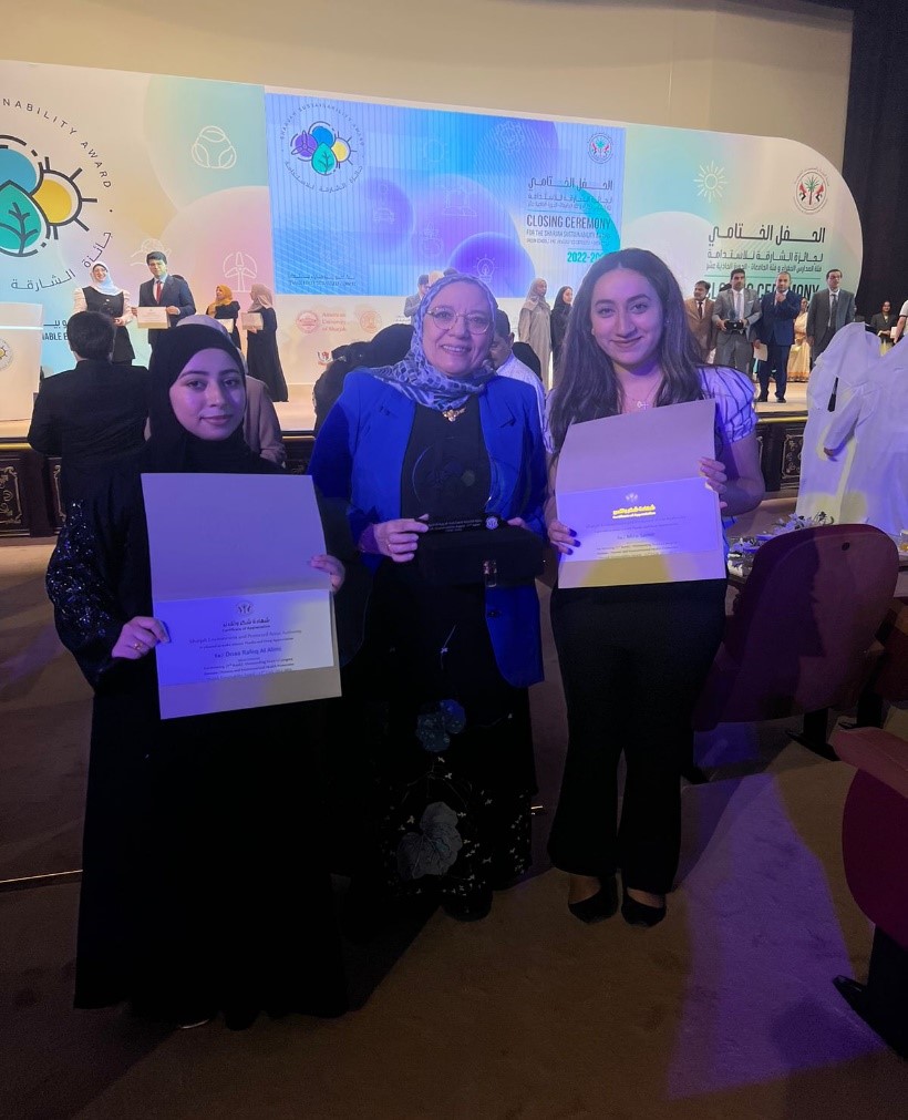 Two students from the College of Pharmacy and Health Sciences, Doaa Rafik and Mira Samir supervised by Dr. Nihal Ibrahim have participated by a novel innovative project in the 11th cycle of the Sharjah Sustainability Award. The project was well recognized and short listed by the evaluators.