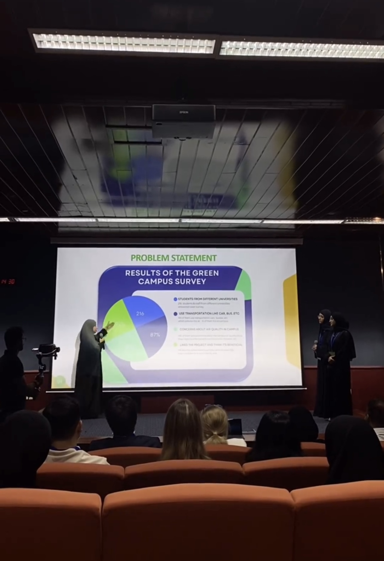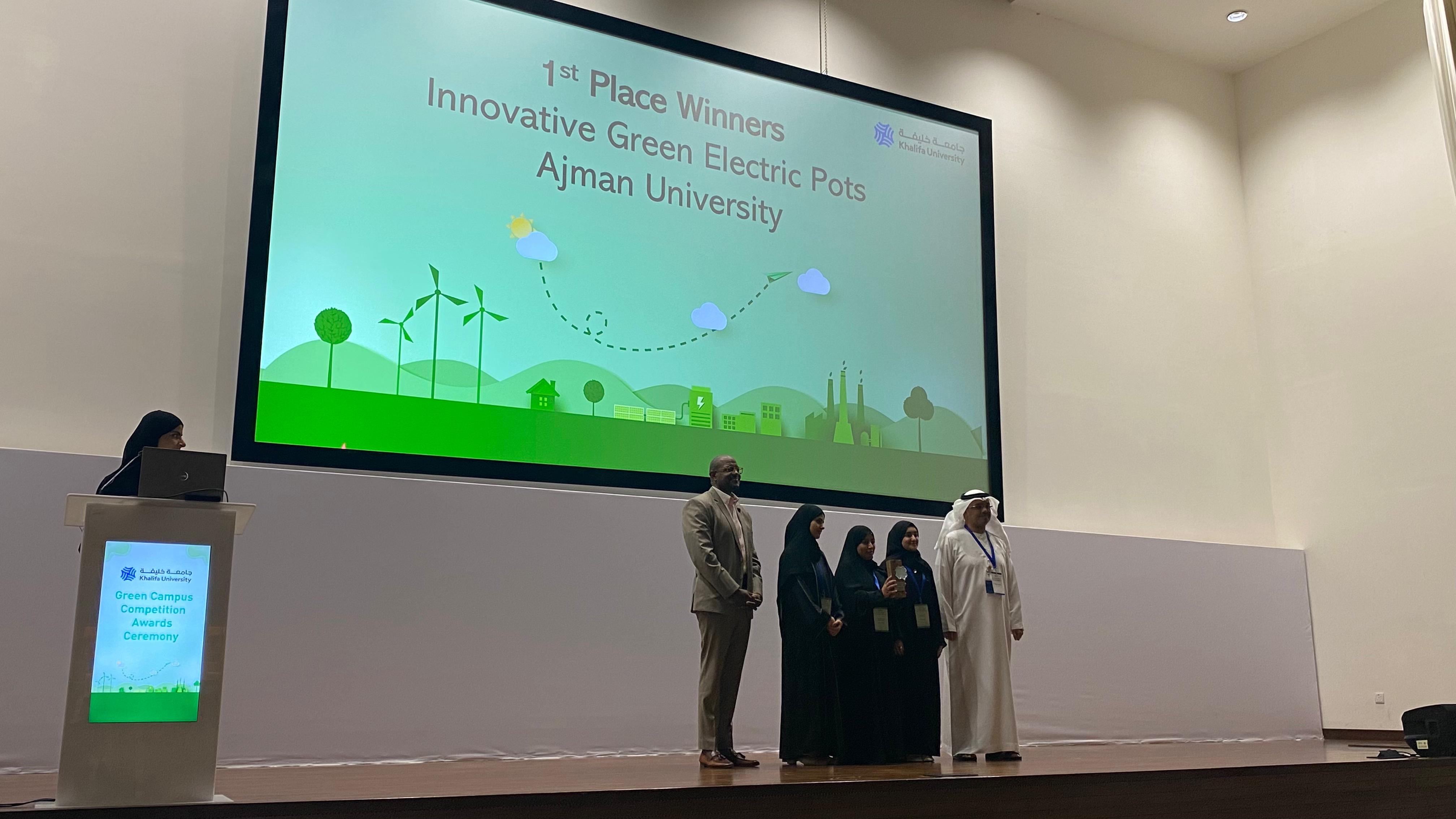 The Pharmacy student Doaa Al Alimi and her team represented Ajman University at the Green Campus Competition held at Khalifa University. The team won the first place with their project titled the Innovative Green Electric Pots! This achievement is especially meaningful as it highlights our commitment to sustainability and aligns closely with the UN Sustainable Development Goals (SDGs).