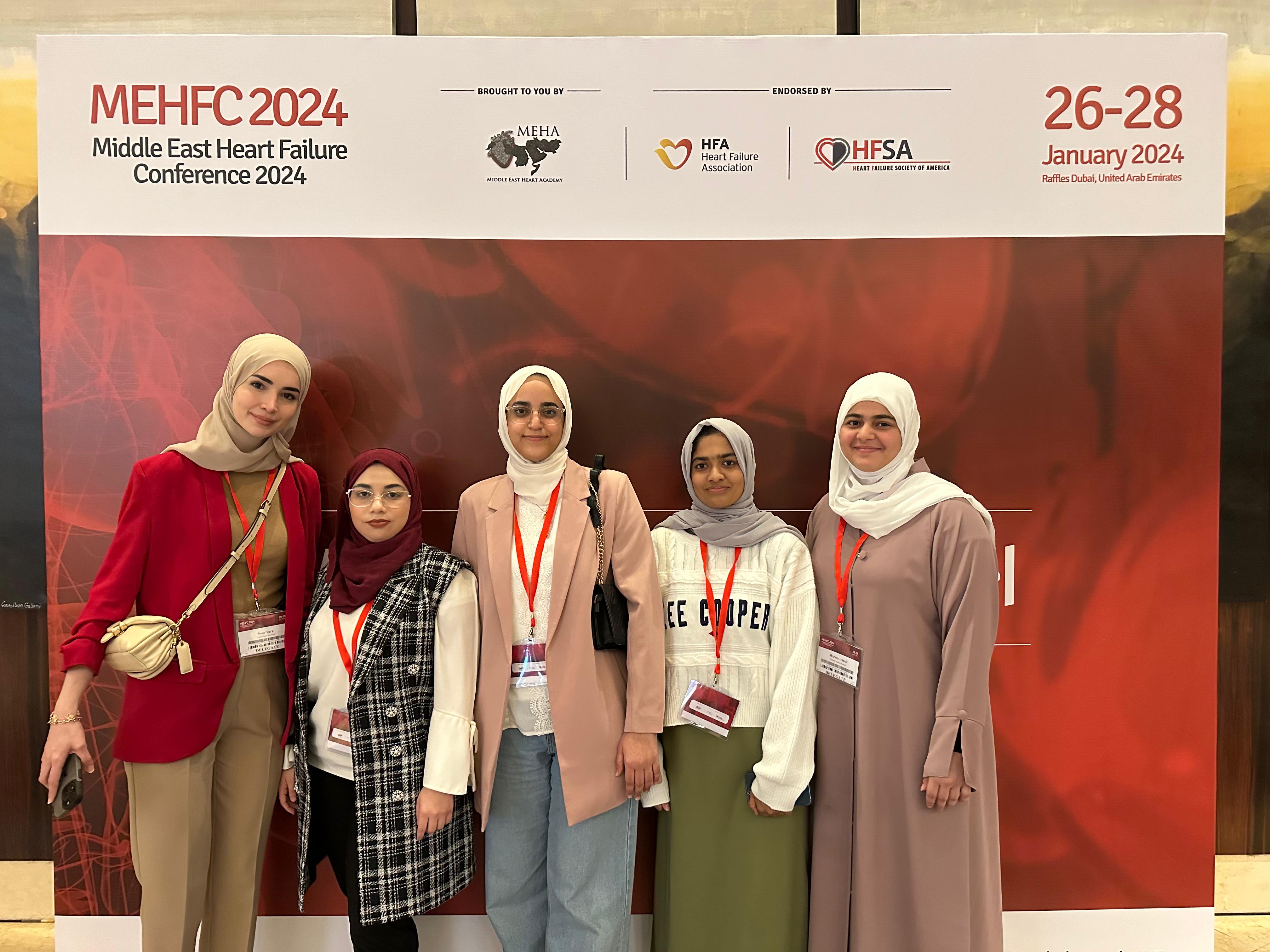 On January 26-28, 2024, faculty and students in the MSc in Clinical Pharmacy program at Ajman University, guided by Dr. Sanah Hasan, attended the Middle East Heart Failure Conference (MEHFC 2024) at the Raffles Hotel in Dubai. The conference was organized in collaboration with the Heart Failure Society of America (HFSA), the Heart Failure Association (HFA), and the Middle East Heart Academy (MEHA).
