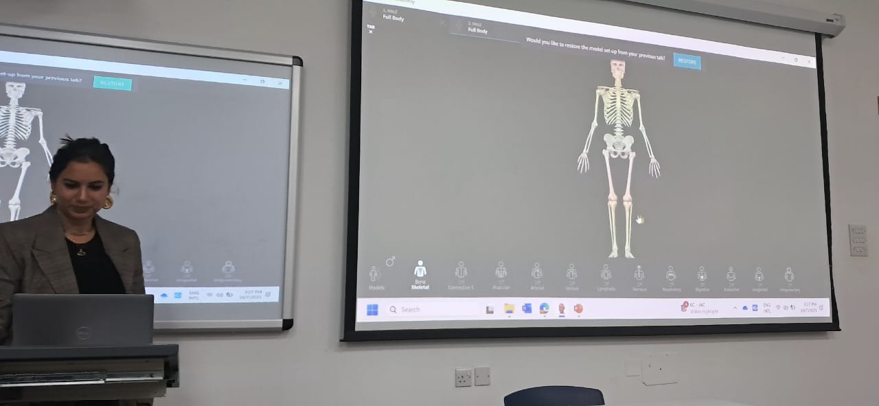 The event, coordinated by Dr. Hosny Sultan and Dr. Deema Mahasneh, Head of the Nursing Department, featured an engaging session led by Ms. Sylvia Farag from ELSEVIER, who provided faculty and students with in-depth training on the Osmosis Nursing platform. Participants were also introduced to advanced educational tools, including ClinicalKey for Nurses and the Complete Anatomy Platform, designed to strengthen digital learning and evidence-based teaching.