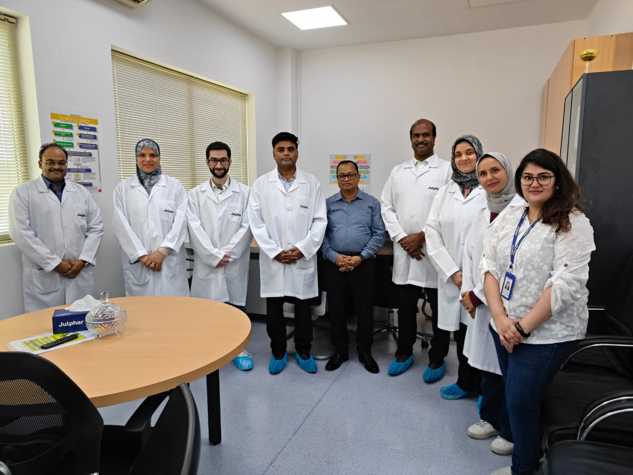 A faculty delegation from Ajman University’s College of Pharmacy and Health Sciences (COPHS) recently visited Julphar Gulf Pharmaceutical Industries Manufacturers (Julphar), one of the largest pharmaceutical manufacturers in the Middle East. The visit aimed to strengthen ties between academia and industry, promote collaborative research, and bridge the gap between pharmaceutical education and real-world industrial practices. The delegation was warmly welcomed by Julphar’s management at the company’s headquarters and manufacturing facilities in Ras Al Khaimah. During the visit, faculty members were given a detailed tour of Julphar’s formulation development, analytical and quality control laboratories. The discussions held during the visit focused on exploring avenues for research collaboration, student training and internships, workshops/seminar for students, and development of joint industry courses in pharmaceutical and clinical sciences.