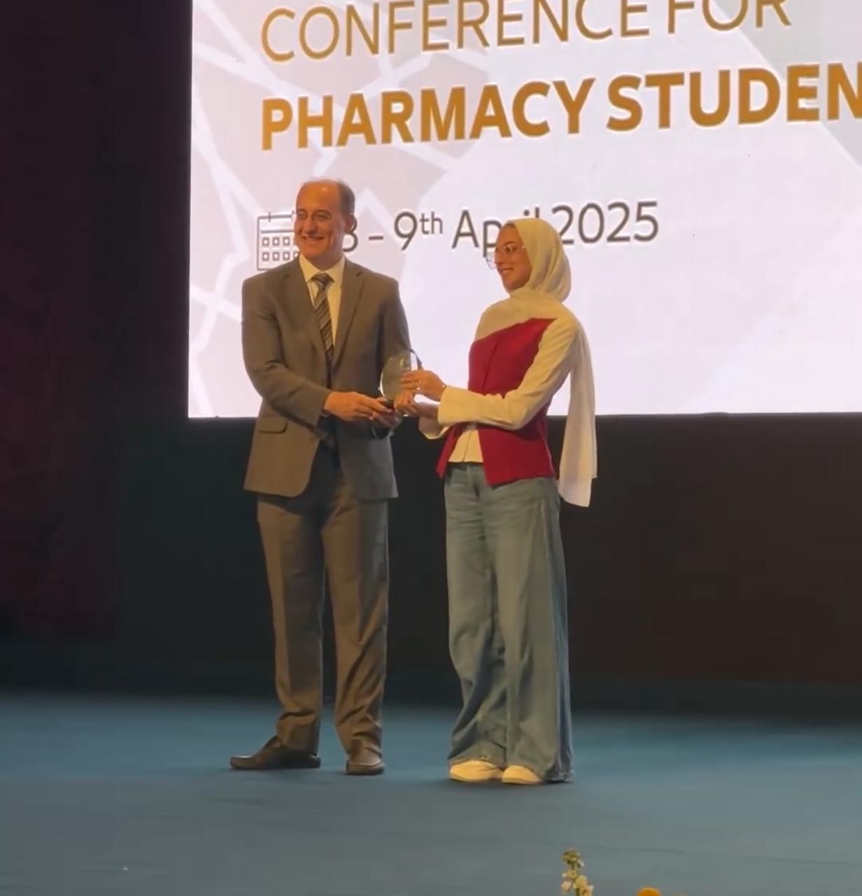 Hana Mohamed, the third-year excellent student won the first place in the Pharma Influencer Challenge.