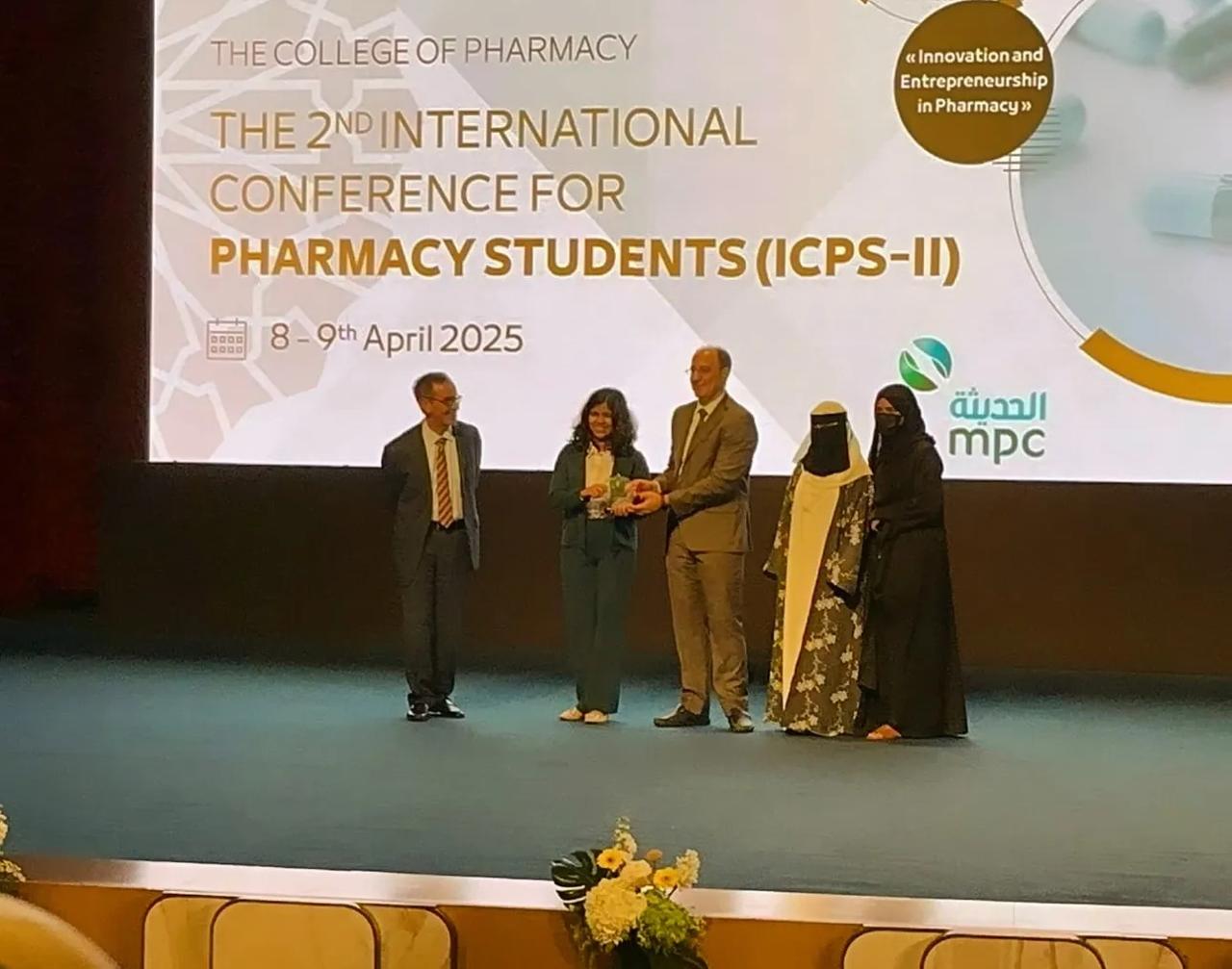 Doaa Rafeq Al Alimi, our third-year dedicated student was awarded the second place in the category of the Best Informative Poster, for her poster “Eco Pharm AI: Smart Pharmaceutical waste Disposal” supervised by Dr. Nihal Ibrahim.