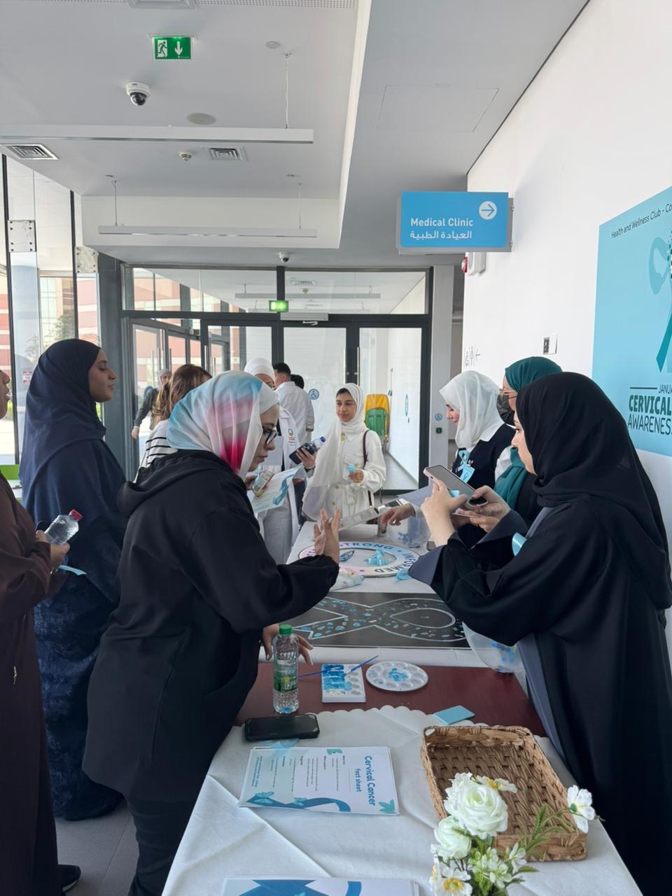In recognition of Cervical Cancer Awareness Month, the Health and Wellness Club at the College of Pharmacy and Health Sciences organized a comprehensive on-campus awareness initiative under the supervision of Dr. Nihal Ibrahim. The initiative aimed to promote prevention, encourage early screening, and empower female students to make informed decisions regarding their health. The campaign highlighted cervical cancer as one of the few cancers that can be effectively prevented through vaccination, regular screening, and early intervention, reinforcing the importance of education and proactive healthcare practices in reducing health risks and safeguarding long-term well-being.