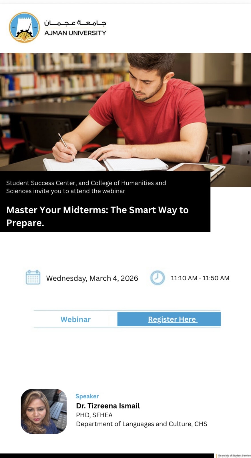 In November 2019, Ajman University (AU) announced the formation of the Student Success Center (SSC) to serve all the students enrolled at the University.